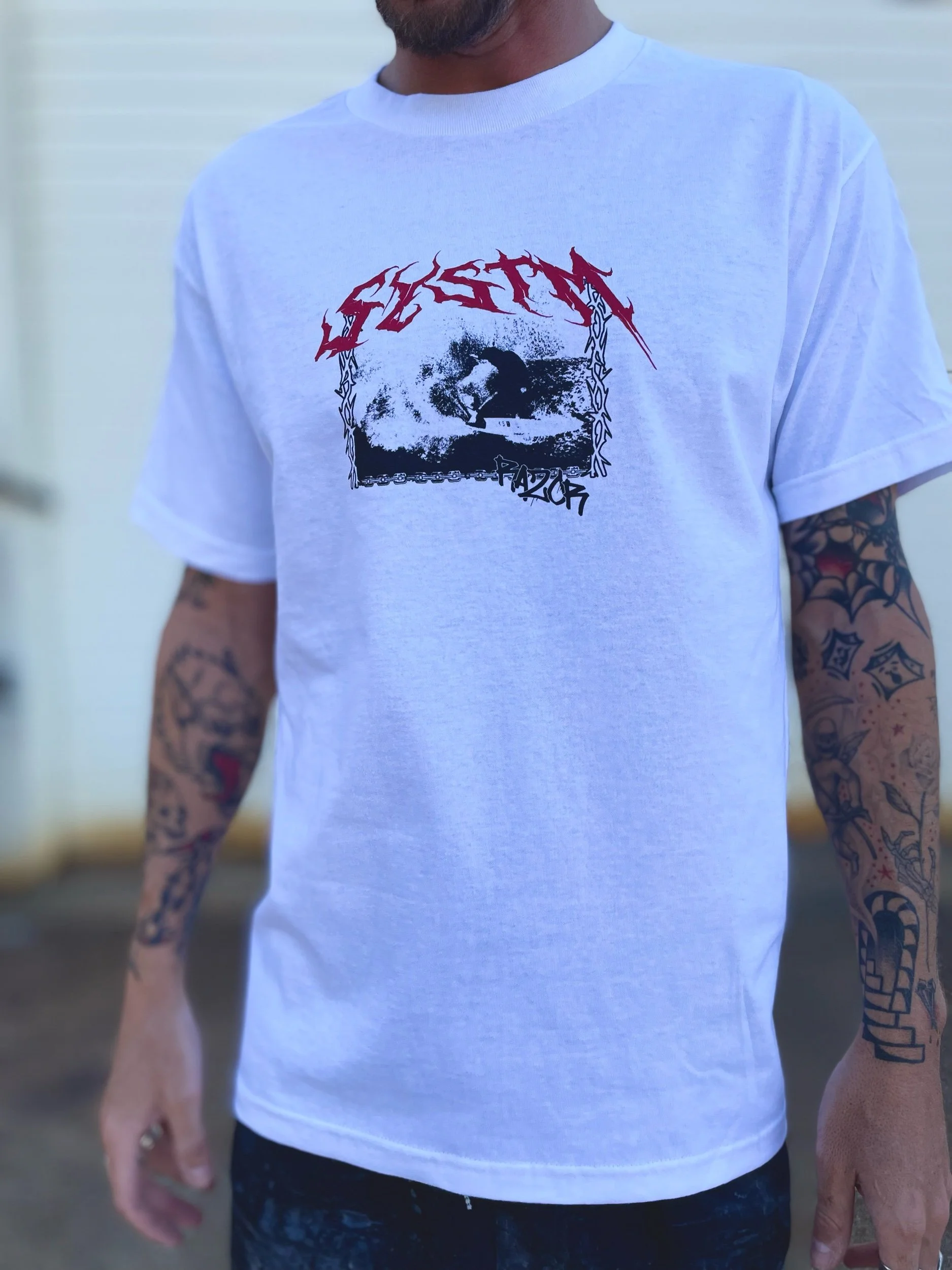 Shop › Systm Razor Tee Image 1 of 2 Image 2 of 2 Systm Razor Tee $60.00 sold out Limited edition Razor model teeFeaturing Robbie Rickard Size: L XL Sold Out Added! Limited edition Razor model teeFeaturing Robbie Rickard